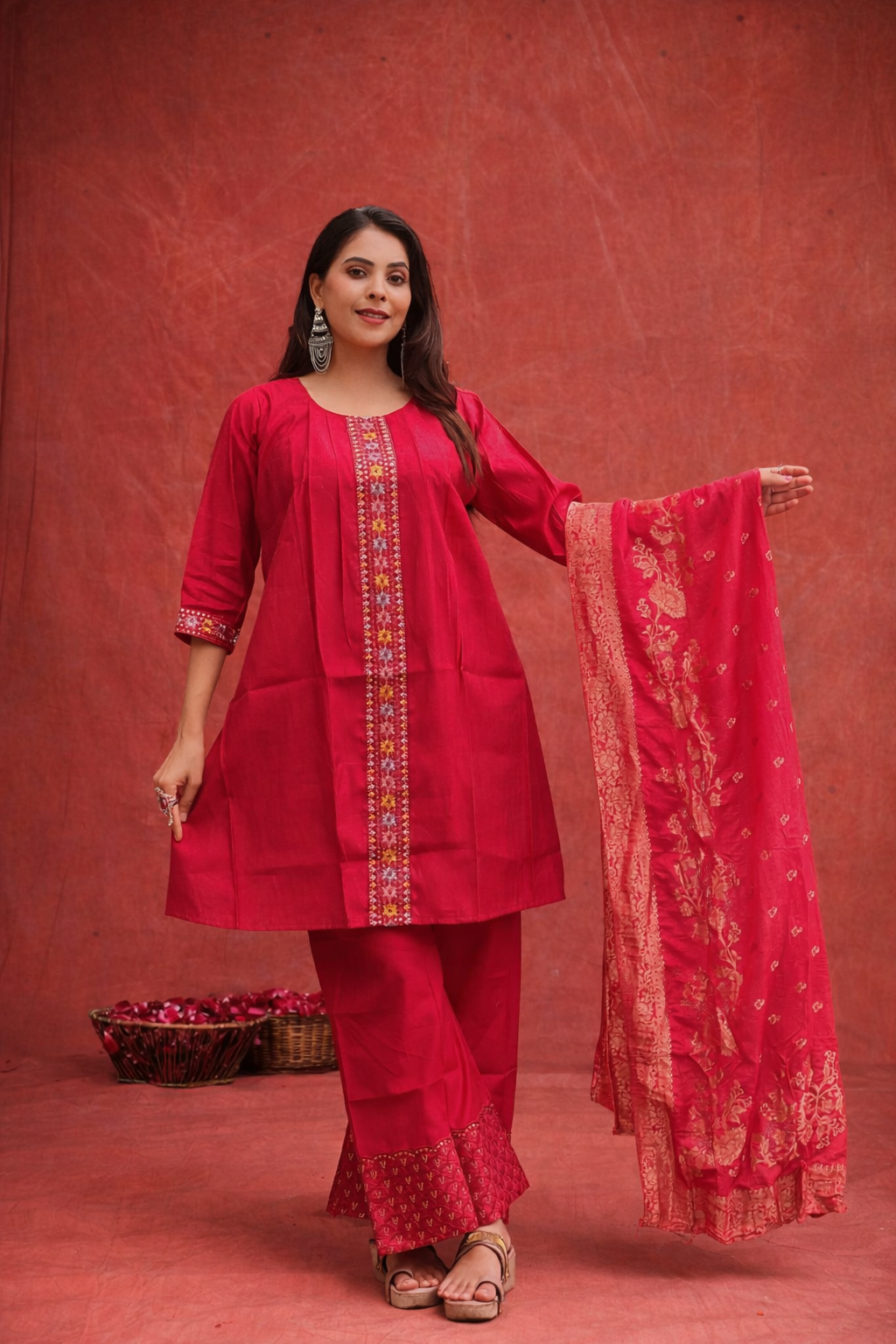 Elegant Women Embroidered Work Kurti set with heavy beautiful Dupatta